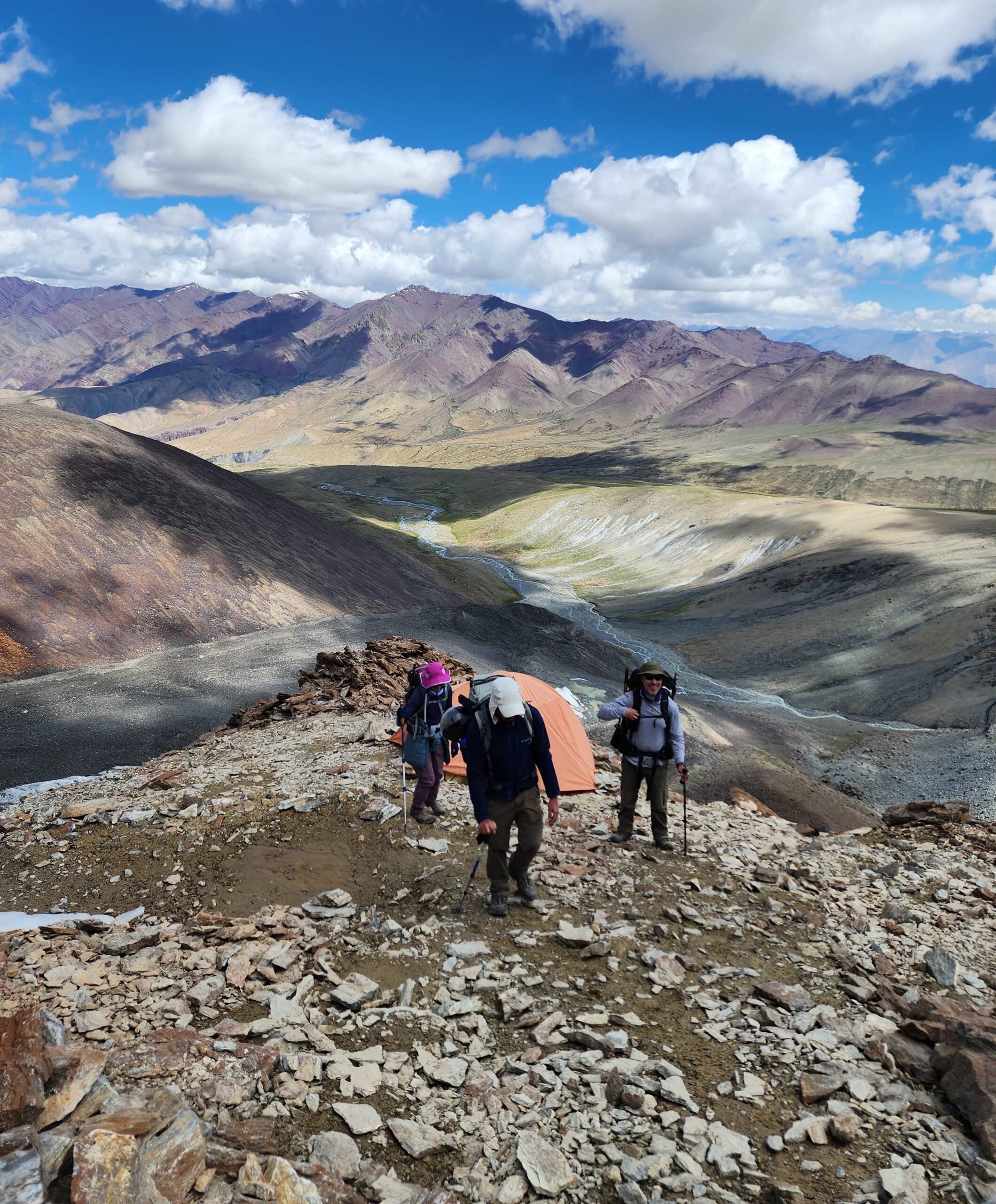 Today is set aside for acclimatization. After breakfast, we take a slow and steady hike up to Kongmaru La, a high mountain pass with incredible views of Ladakh and the distant peaks of the Zanskar range. The trail to the pass is steep and rocky, but the walk is taken slowly to help your body adjust to higher elevations. From the top of the pass, we can enjoy a stunning panoramic view of Kang Yatse, the Indus Valley, and snowy peaks in the distance. After spending some time at the top, we descend slowly back to Nimaling.