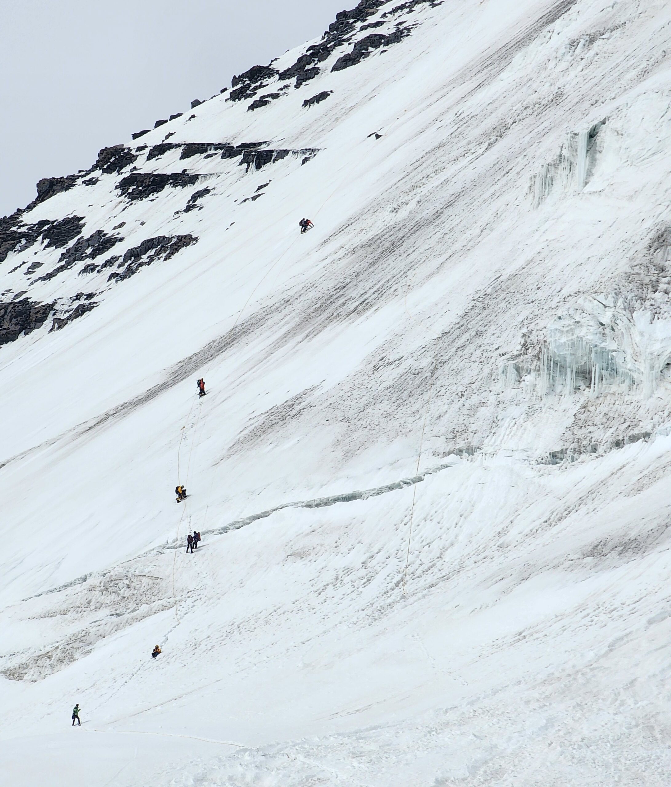 This is the most important and challenging day of the expedition. We begin our summit push very early, usually around 1–2 a.m., using headlamps to light the way. The climb starts on steep snow and ice slopes, and we’ll be roped up with our guides for safety for an hour or so and then we will begin climbing on fix rope. After 6–7 hours of steady climbing, we reach the summit of Kang Yatse I (6,400m), where panoramic views stretch across the Ladakh Range, Zanskar Range, and even to distant Karakoram peaks. After enjoying briefly, we begin our careful descent back to Camp 1, taking 3–4 hours depending on conditions.