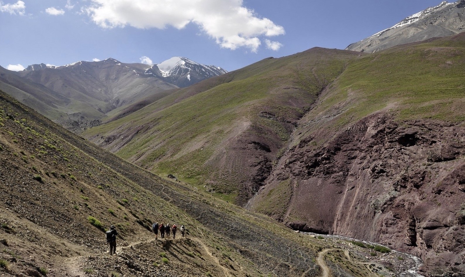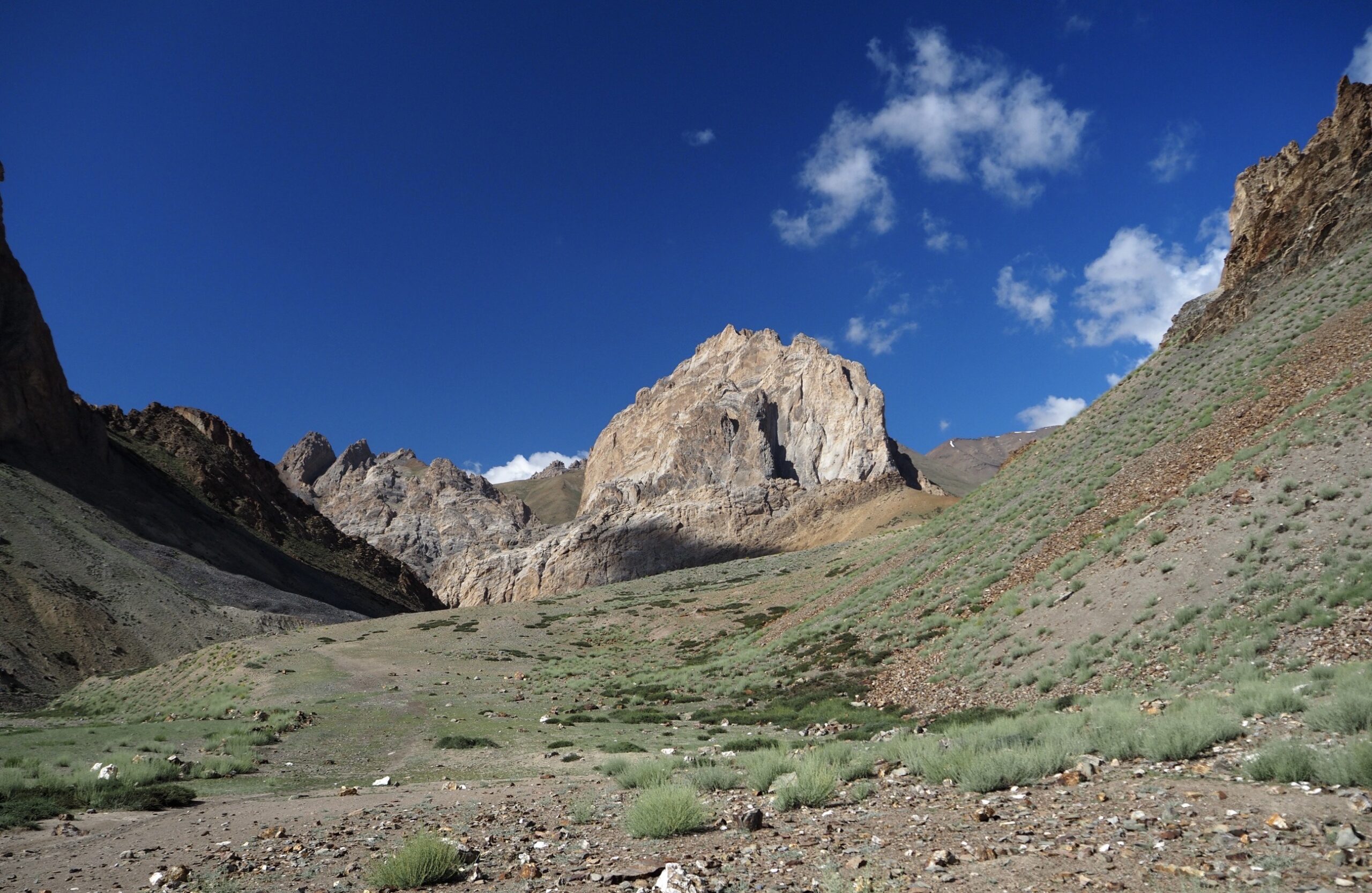 We continue to explore the high valleys as we make our way to the base of Kanji La Pass. The route takes us through expansive alpine valleys framed by rugged cliffs and striking rock formations. The trail is quiet and remote, with few signs of human activity beyond occasional herders tending their flocks. The mountain air is crisp, and the landscapes feel untouched and wild. Reaching Kanji La Base Camp, we prepare ourselves physically and mentally for the significant pass crossing ahead, surrounded by the majestic stillness of Ladakh’s high plateau.